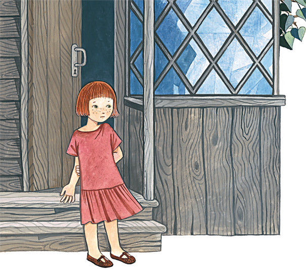 Оранжевые лучи вечернего солнца озарили крыльцо. И на нём, в красном платье, без платка и в сандалиях на босу ногу, стояла и улыбалась наша Маруся.
