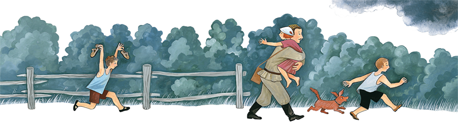 Только-только мать успела ссадить Чука с Геком и принять от военного вещи, как поезд умчался.