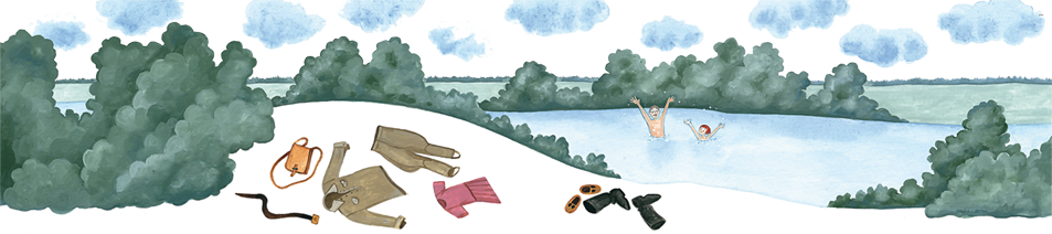 Но все люди быстро поняли, в чём дело, и стали смеяться. Усатый дядька надел брюки, военную гимнастёрку и отвёл Гека на место.