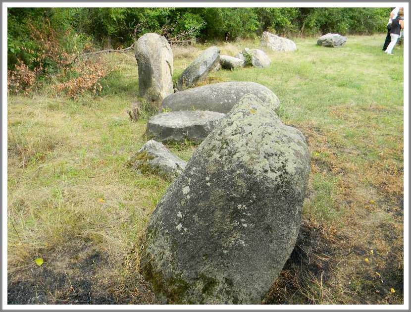 «Это мегалитический памятник чрезвычайной редкости; в середине его установлены в круг вертикально 24 больших плоских камня - один за другим, высотой как рослый человек; внутри круга был похоронен человек, однако, скелет его настолько истлел, что ни взять его, ни измерить никак нельзя было - это уже был не человек, а «прах и пепел»; вокруг скелета тоже превратились в «прах и пепел» речные ракушки».