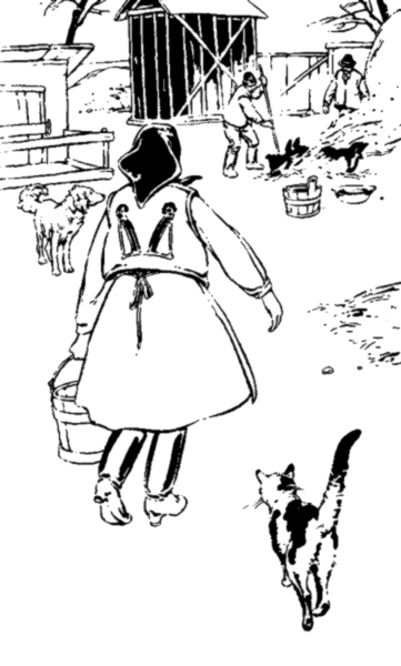 Бу возмужала и окрепла, мать на нее не нарадуется. Вот корова с телкой вышли к колоде на водопой, Бу неудержимо шалит и резвится под протестующие крики уток и кур.
