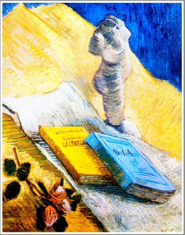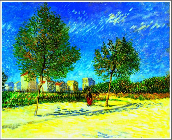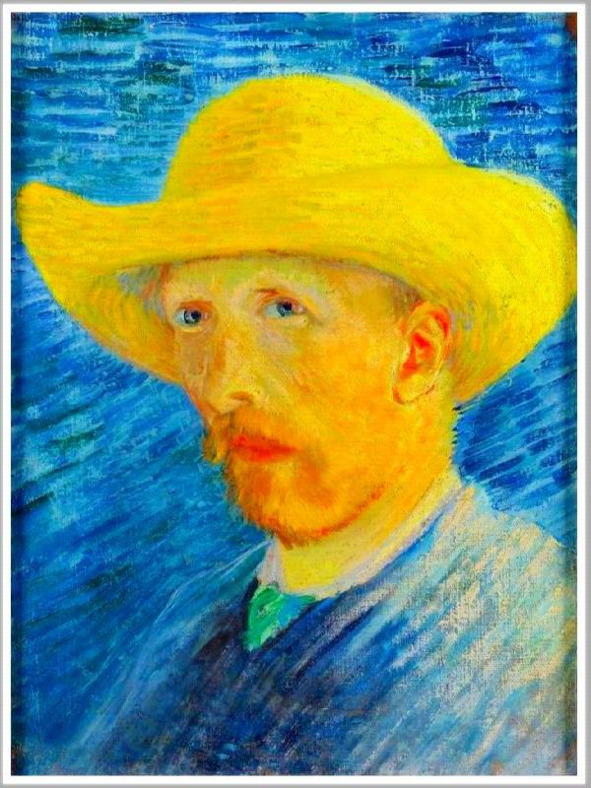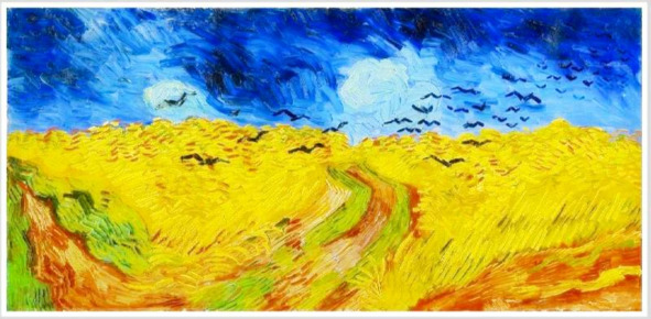 Достаточно часто в своих работах в последние годы жизни и Винсент Ван Гог использовал эти два цвета: синий, нередко переходящий в салатово-зеленый [или фиолетовый], и жёлтый — с переходом в золото-оранжевый. Включая свои, пожалуй, лучшие картины: «Звездная ночь» [1889] и «Пшеничное поле под грозовым небом» [1890]. Это не может не броситься в глаза любому, кто обращался к творчеству художника.