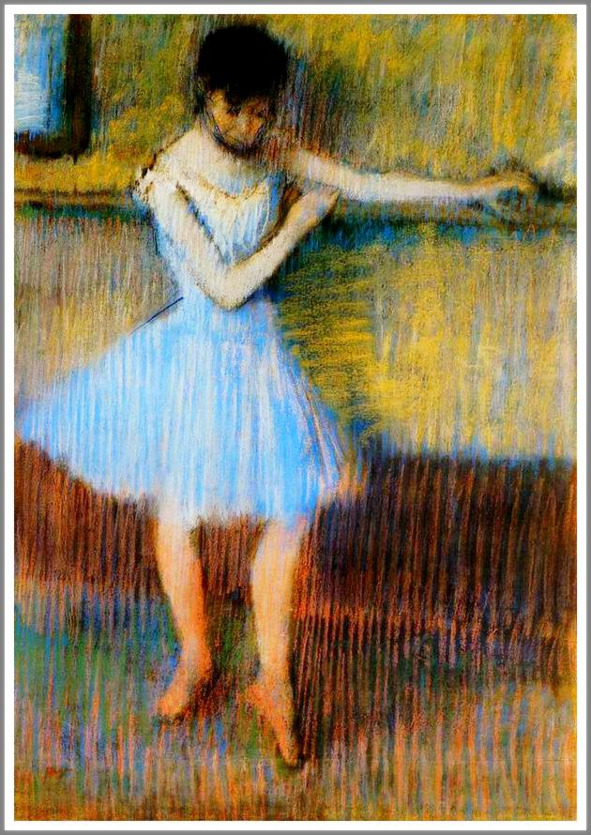 В завершение нашего краткого обзора [или погружения в сине-жёлтое настроение великих художников] я предлагаю познакомиться с картиной «Три танцовщицы в желтых пачках» [1904] не превзойденного Эдгара Дега.