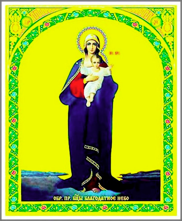 Икона Божией матери «Благодатное небо» создана художником Виктором Васнецовым для киевского Свято-Владимирского собора. Привожу ее любопытную историю.