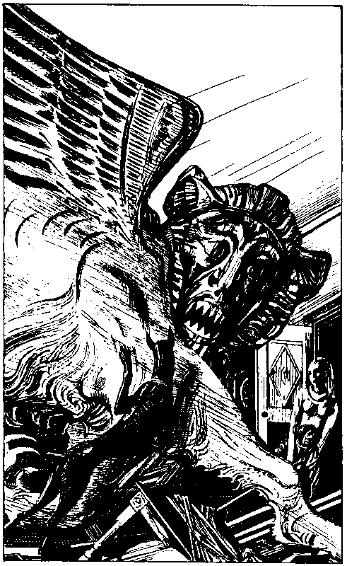 Он занес копье, будто желая нанести удар, лицо его исказилось страшной гримасой, однако затем он вновь опустил руку.
