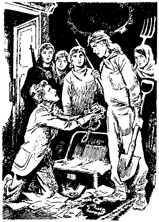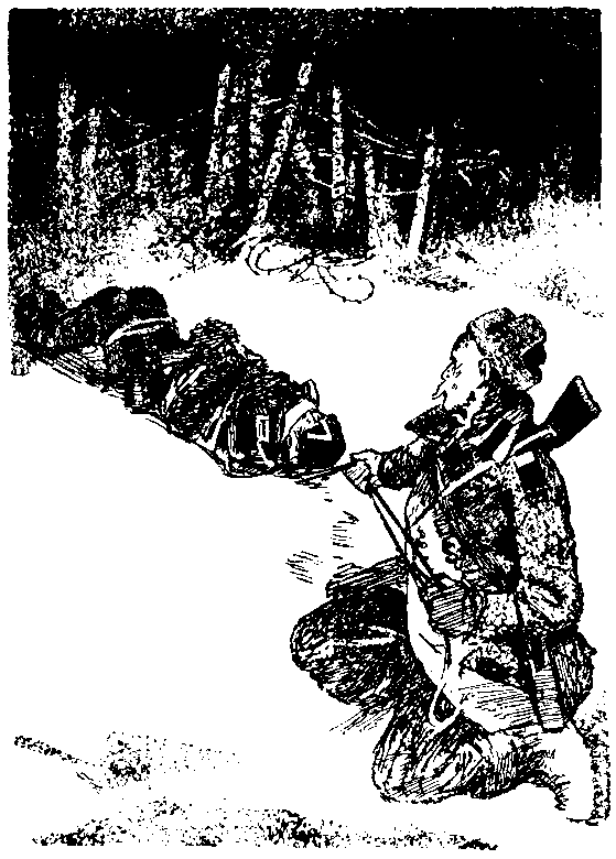 Видели колхозники, издали следившие за избёнкой Матвея, как через полчаса сбежал с крыльца внучонок Кузьмина Вася с холщовой сумкой за плечами, как скрылся он в кустах на лесной опушке, сопровождаемый Шариком, как вынес потом на улицу старик свои широкие подбитые мехом охотничьи лыжи и как стал их натирать медвежьим салом, поглядывая на окна избы, где жил немецкий офицер.
