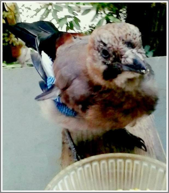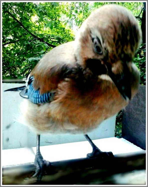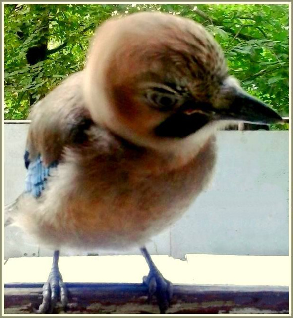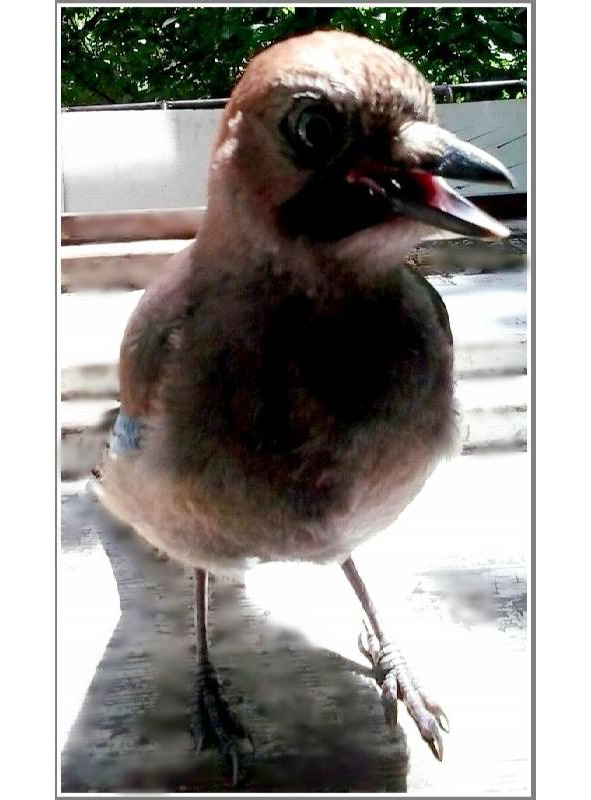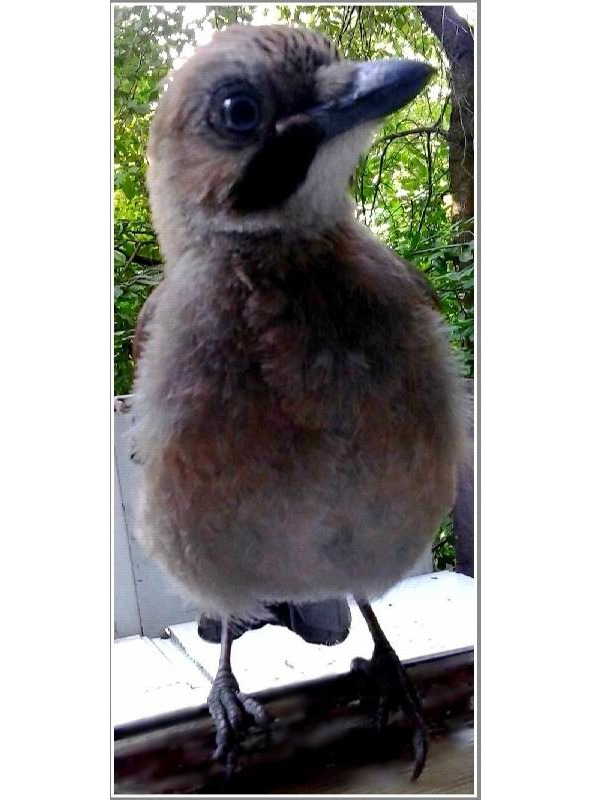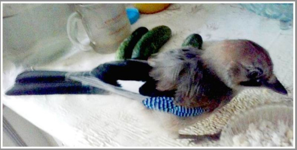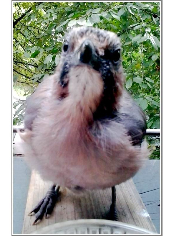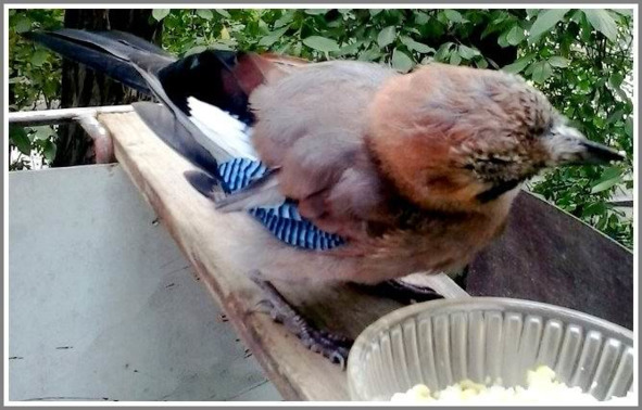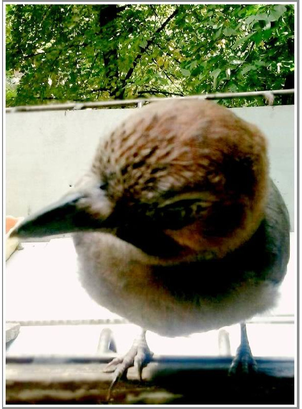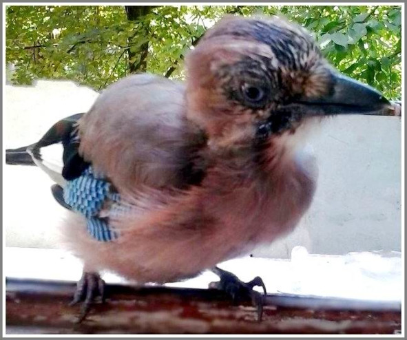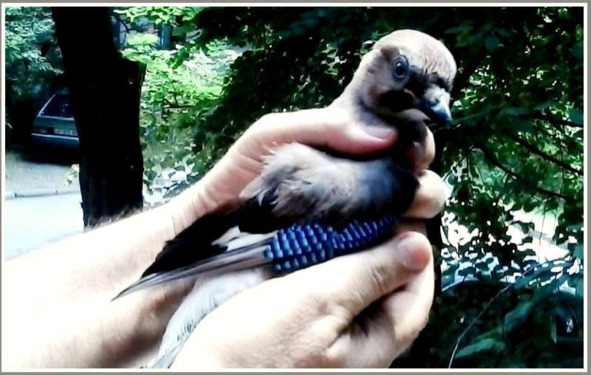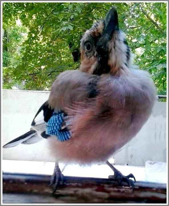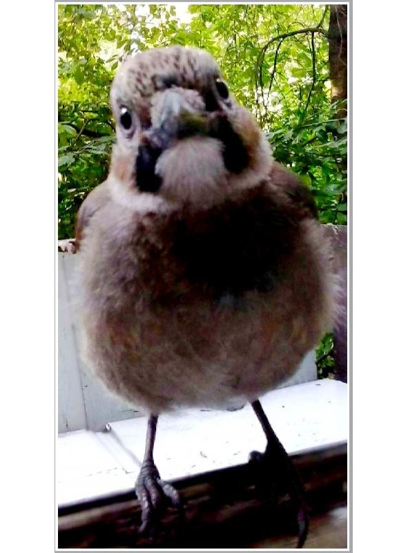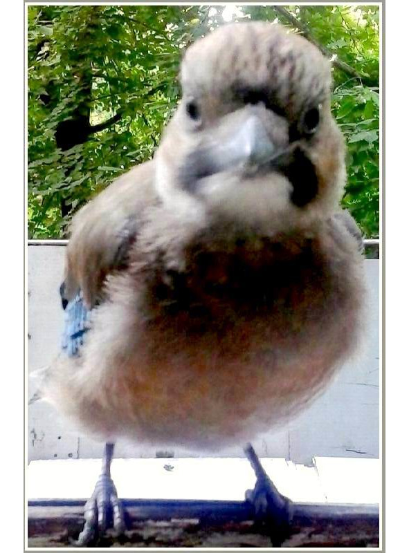 «Намедни утром жена выносила мусор, а вернулась домой не одна — принесла птенца сойки. Говорит, бродил возле мусорки, приставая к прохожим: возьмите, мол, к себе и покормите, а то я потерялся и очень проголодался.