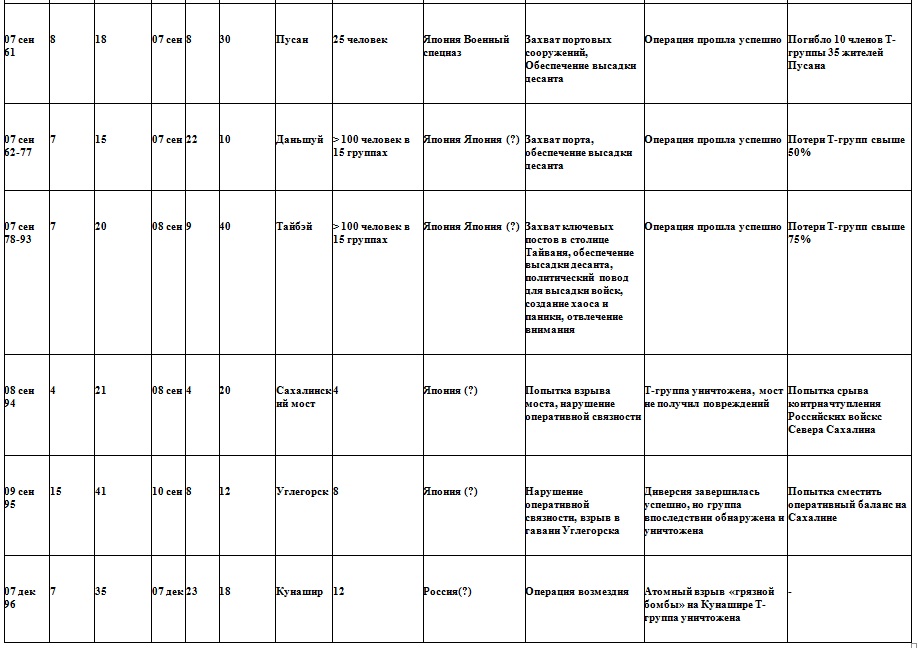 (обратно)Естественно, что в АТР применялись не арабско-мусульманские Т-группы, а Т-группы левой ориентации, включающие китайцев, корейцев, тайцев, филиппинцев, кхмеров, вьетнамцев, непальцев. Достаточно широко были представлены японские граждане, отдельную этническую позицию занимали жители Окинавы.