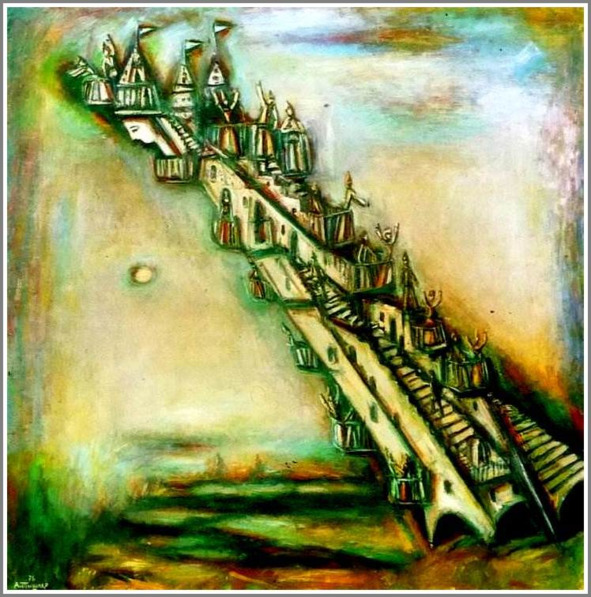 — Меня всегда почему-то волновала проблема лестницы. Как сделать, чтобы было движение? Кстати, эту проблему я решал в серии рисунков к фильму Григория Рошаля «Зори Парижа». Все рисунки Рошаль забрал себе, я их больше не видел.