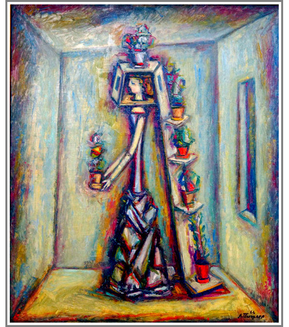 В этой связи интересны образы женщин на картинах мастера. Они — не от мира сего. Это иная, тышлеровся реальность. Фантастический мир Тышлера.