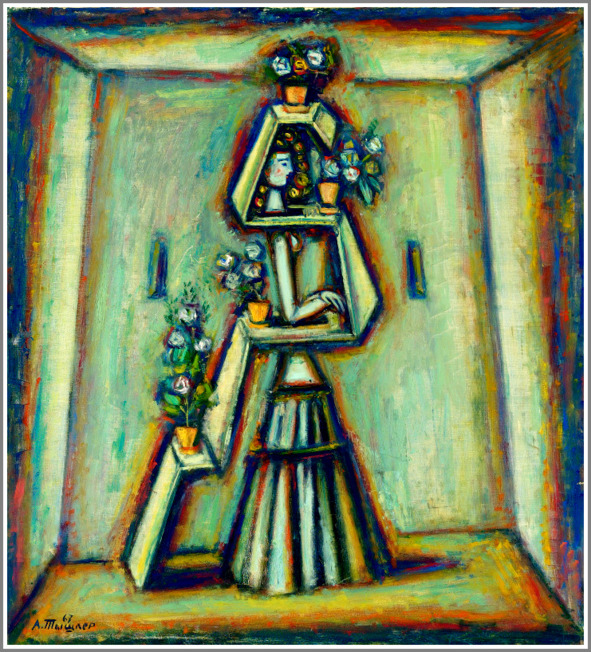 Тышлер показывает серию «Цветочные полки». Это лирическая, искрящаяся, как маджари — вино из молодого винограда, — серия картин. Цвет у Тышлера интенсивный, свежий, осязательный. И вдруг те же синие, желтые, розовые, зеленые, фиолетовые, охристые краски становятся невыносимо печальными. Это уже картина другой серии «Смерть командира», написанная художником в 1937 году. Живопись утратила радость, она бесследно пропала, эта предвестница счастья, а тышлеровская живопись уже пропитана мукой, горечью, страданием.