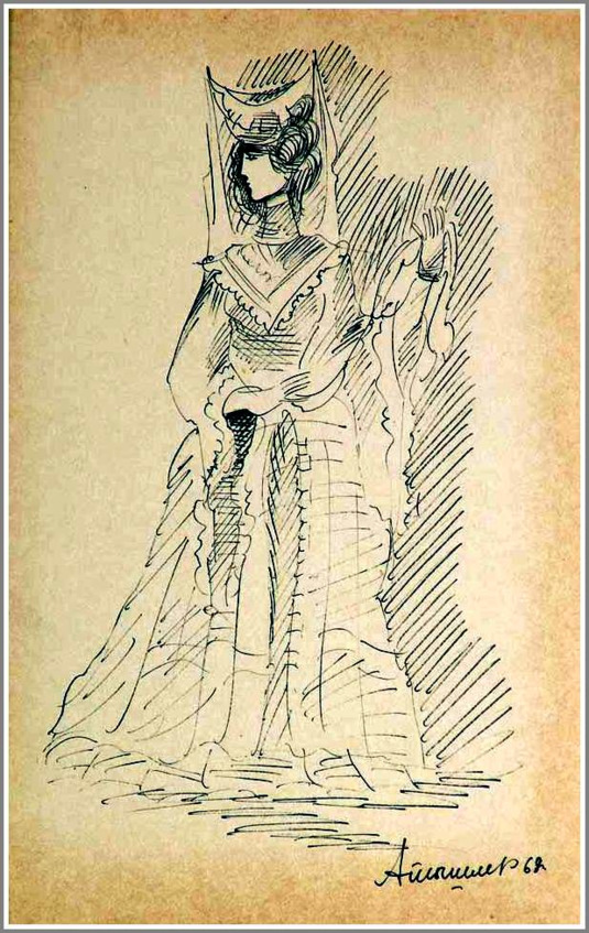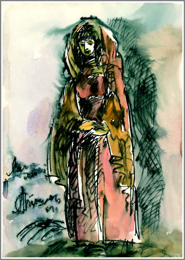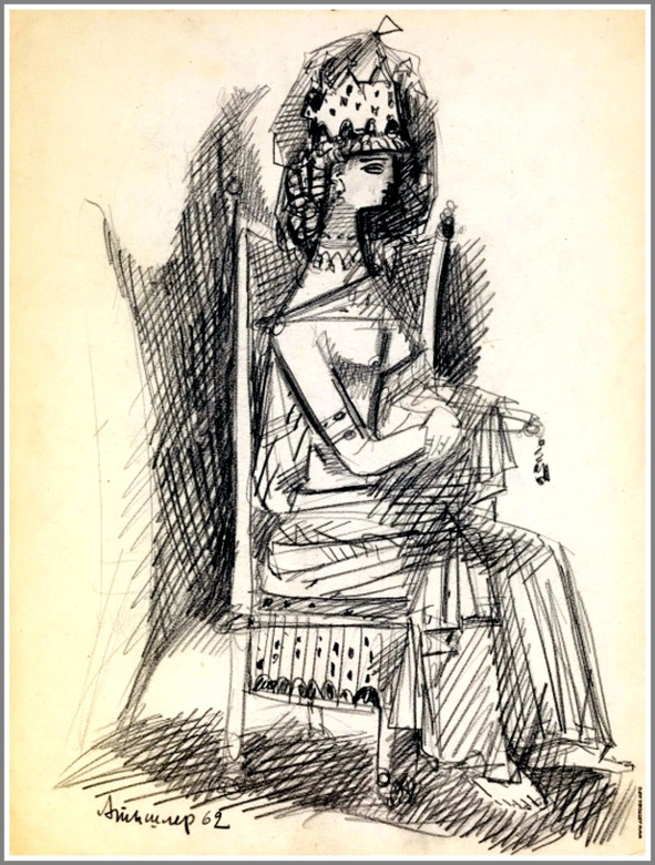 Я пошел — и что вы думаете? — нашел! Знаете, что я там нашел? Скульптуру. Да, книги, в которых рассказывалось, что немцы делали раскопки и нашли скульптуру восьмого века. Я воодушевился. И задумал построить весь спектакль на скульптуре. Костюмы бедняков, крестьян, рабов — все строилось на скульптуре. Я всегда делал все сам — и костюмы, и декорации. Есть художники, которые передоверяют часть работы другим. Это нарушает цельность. У меня получилось неплохо. И весь спектакль удался, вышел интересным, значительным. Когда была премьера, Михоэлса уже в Ташкенте не было, он вылетел в Америку по правительственному заданию. Узбекское правительство высоко ценило его работу по подъему национального искусства и наградило почетной грамотой и золотыми часами. Я ставил еще в Ташкенте и музыкальный спектакль. Когда я включал в Ташкенте радио, мне казалось, что все время передают одну и ту же музыку. Я удивлялся: неужели у них нет другой музыки? Все время одно и то же, одно и то же. И на улице, и в чайной. Мне сказали, что это не так. Я стал прислушиваться. И понял, что это не музыка плохая, а мои уши — ослиные. У них, узбеков, очень хорошая музыка. А вот художников у них совсем не было.