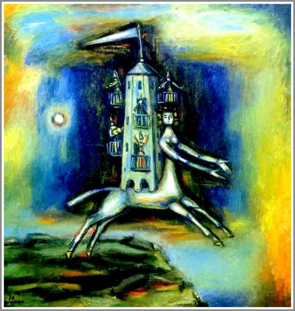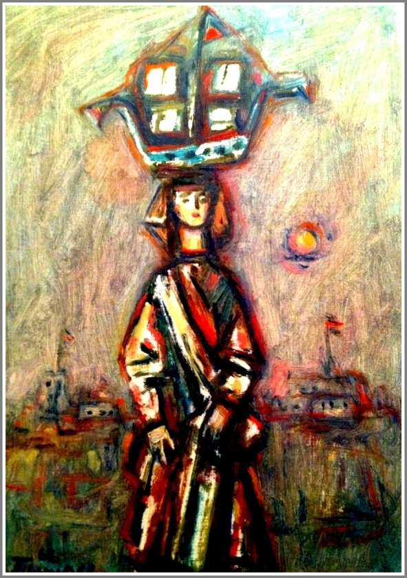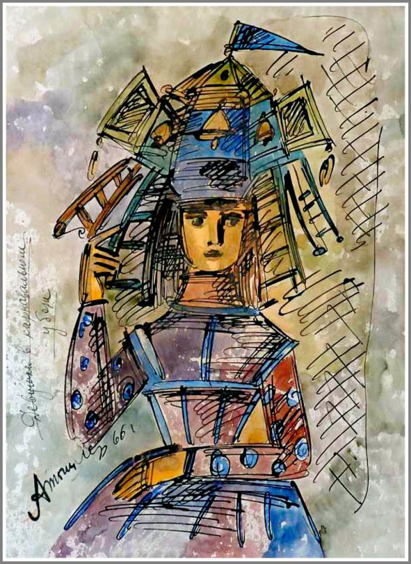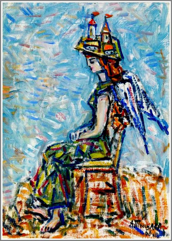 — Я люблю писать и рисовать людей, особенно женщин, — признается Тышлер. — Но изображаю их, как правило, в необычных и необыденных связях и ситуациях. Соединение с вещью происходит вне законов перспективы и реальных масштабов. Казалось бы, человек меньше, чем дом. А в моих работах женщина иногда может нести на голове целый город.