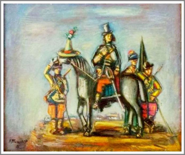 Сначала, кстати, мне показалось, что Тышлер высмеивает в некоторых своих работах батьку, изображая его… совершенно не таким, каким мы помним мятежного Нестора по сохранившимся портретам. «Вы не учитываете, — направили мои мысли в нужно русло сведущие люди, — что он был театральным художником, мир видел по-своему».