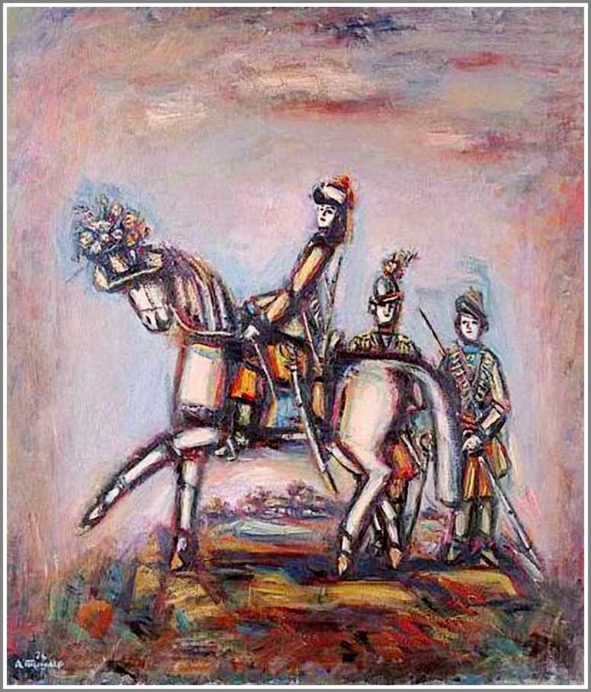 А «Махно на коне» 76-го года откровенно женственен. В нем уже не угадываются мужские черты. Только карабин за плечами и сабля на боку свидетельствуют о решительном характере всадника, восседающего на коне, одетом в шляпу.