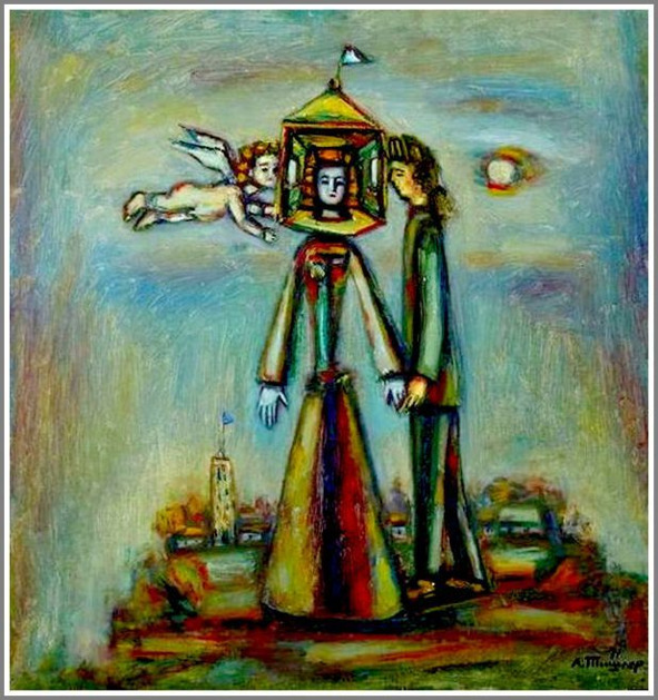 Представление об этом мире можно сложить, например, по созданной в 1970 году работе «Влюбленная пара», которая лично мне приглянулась с первого взгляда.