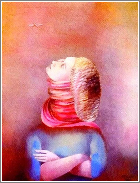 Представим себе… вспышку северного сияния, которое озаряет Ее и Его [это сияние… или что-то типа сияния, к слову, присутствует на многих картинах художника — в качестве фона].