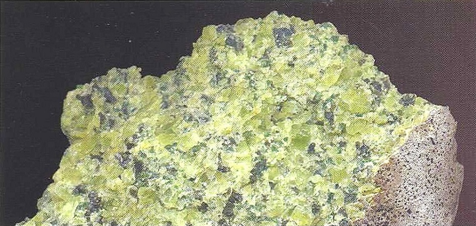 Свойства: Ц — зеленый, желто-зеленый (хризолит), коричнево-зеленый до черно-зеленого; Ч — белая; Б — стеклянный; П — просвечивающий до непрозрачного; УВ — 3,3–3,6; Т — 6,5–7; СП — хорошая; ИЗ — раковистый до неровного; М — кристаллы неправильной формы, зерна.