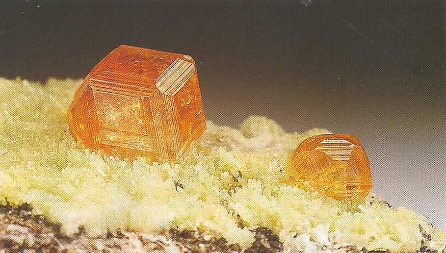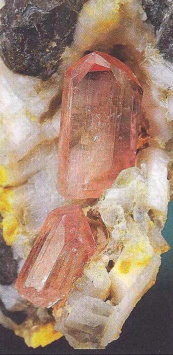 Происхождение и распространение: Магматический в гранитных пегматитах и некоторых гранитах; гидротермальный в полостях липаритов; метаморфический в скарнах и марганецсодержашнх метаморфических породах. Превосходные кристаллы до 30 мм были найдены в гранитовых пегматитах в руднике Геркулес, Рамона, Калифорния, США; близ реки Мариенфлюсс, Намибия, и в линаритовых полостях в Натропе, Колорадо, США.