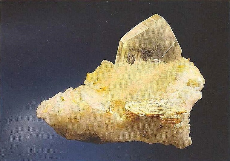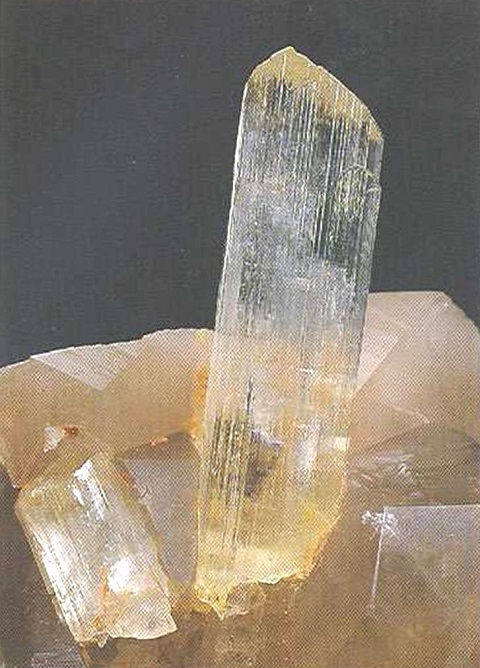 Свойства: Ц — желтоватый, зеленоватый, бесцветный; Ч — белая; Б — стеклянный; П — прозрачный до непрозрачного; УВ — 3,3; Т — 6,5–7; СП — хорошая; ИЗ — раковистый до неровного; М — таблитчатые до призматических кристаллы, зерна.