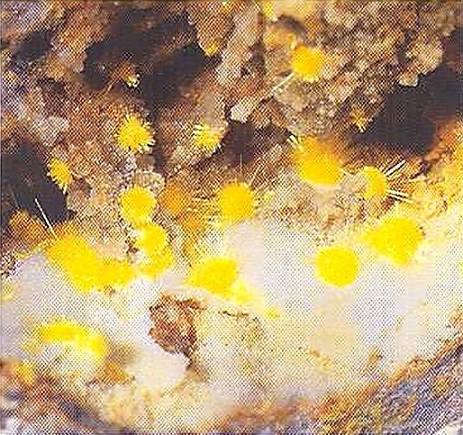 Происхождение и распространение: Вторичный в месторождениях висмута, часто в ассоциации с самородным висмутом. Мелкие кристаллы известны из Горни-Славкова, Чехия; Шнееберга и Иоганнгеоргенштадта, Германия.