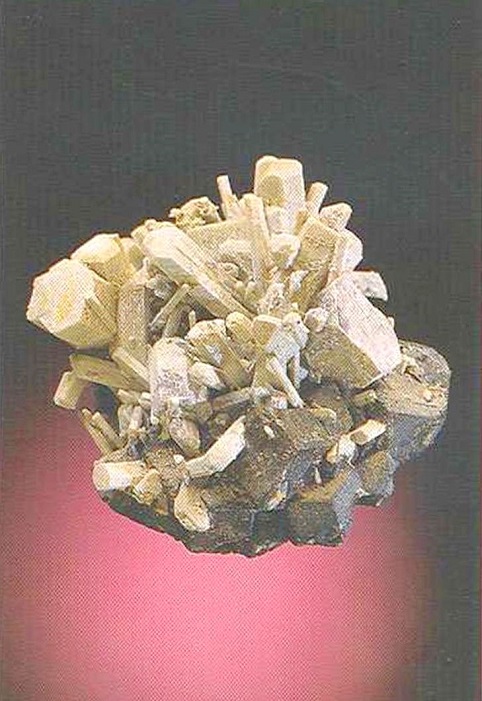 Свойства: Ц — бесцветный, голубой, желтый, серый, белый, зеленоватый, розоватый, красный; Ч — белая; Б — стеклянный; П — прозрачный до просвечивающего; УВ — 3,6; Т — 8; СП — хорошая; ИЗ — неровный; М — хорошо сформированные призматические до таблитчатых кристаллы, радиально-лучистые агрегаты, зерна.