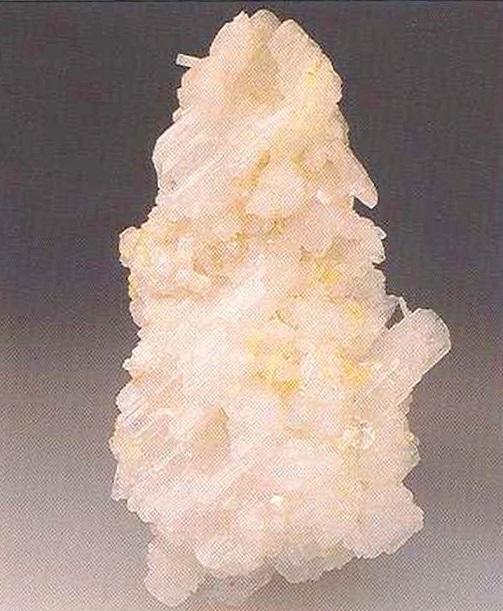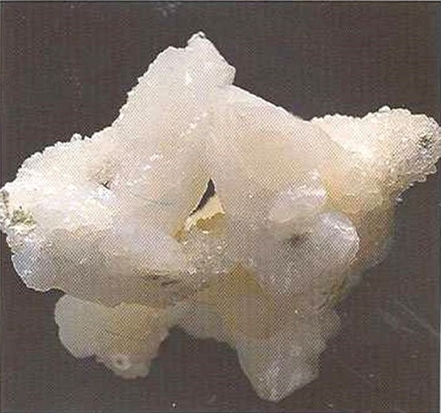Свойства: Ц — бесцветный, белый, желтоватый; Ч — белая; Б — сильный стеклянный; П — прозрачный до просвечивающего; УВ — 3,0; Т — 8; СП — несовершенная; ИЗ — раковистый; М — длиннопризматические до таблитчатых кристаллы, радиально-лучистые агрегаты, зерна.
