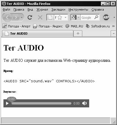 — Firefox версий 3.6.* — Web-обозреватель. Все примеры тестировались на нем.