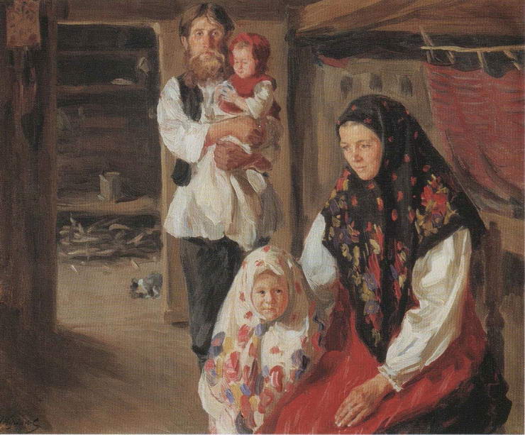 По рекомендации Ильи Ефимовича Советом Академии художеств Куликову был предоставлен отпуск для поездки на родину, в Муром. Там художник среди родственников и близких, сочетая отдых с работой, компонует задуманную еще несколько лет назад конкурсную картину В крестьянской избе (Крестьянская пирушка), для которой делает многочисленные этюды и эскизы и, что самое важное, находит возможность писать сразу всю группу за столом.