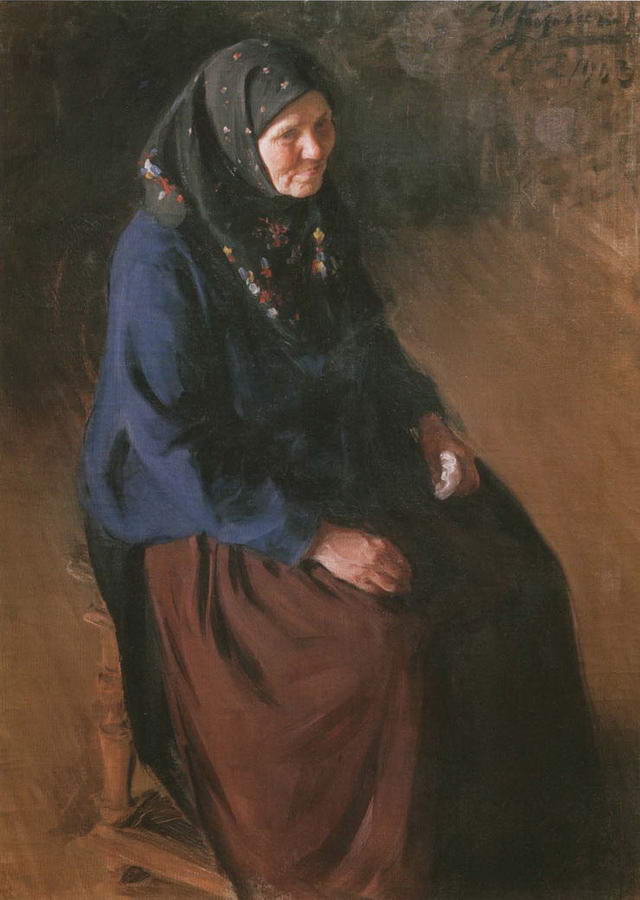 Если в первых портретах чувствуется ученическая рука, которая старается не пропустить ни одной детали лица и фигуры, то портрет отца 1898 года, нарисованный художником после полутора лет обучения у И.Е. Репина, выполнен на высоком уровне портретного сходства.