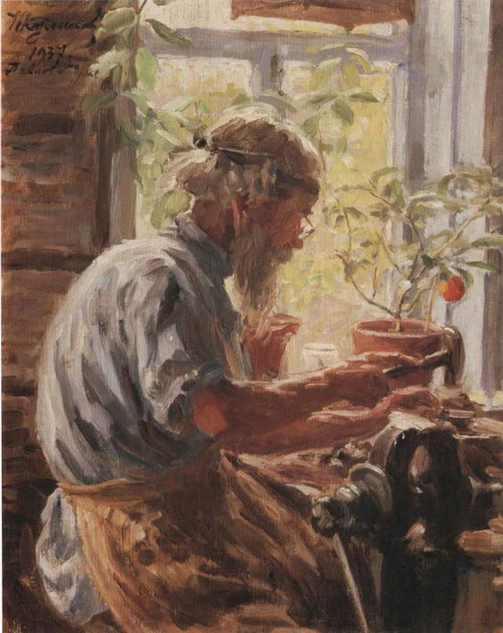 На отчетной ученической выставке осенью 1898 года на один из этих этюдов - Деревенские портные - обратил внимание известный шведский художник Андерс Цорн, посетивший выставку в Академии. Он отобрал эту работу для выставки в Стокгольме.
