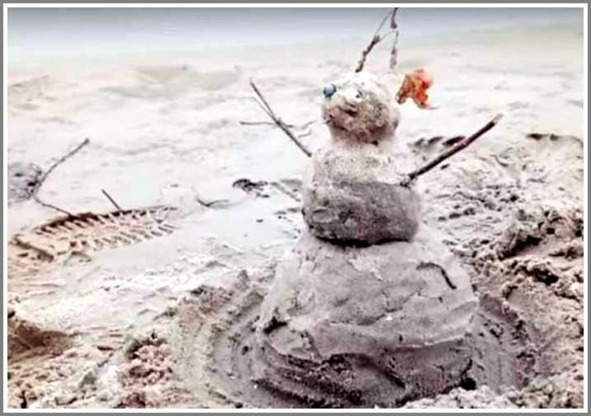 На Центральном пляже Запорожья слепили снеговика из… песка, назвав его «песковиком».