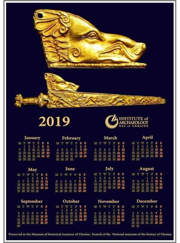 скифский церемониальный меч четвертого века до н. э. из кургана №30 у села Великая Белозерка Запорожской области на календаре на 2019 год».