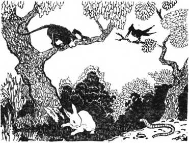 Случилось так, что эти слова услышали Чибис, Земляной Червь и Обезьяна. Их охватил панический страх. Трусливого Чибиса больше всего взволновали стихийные бедствия, и он проговорил со слезами на глазах: