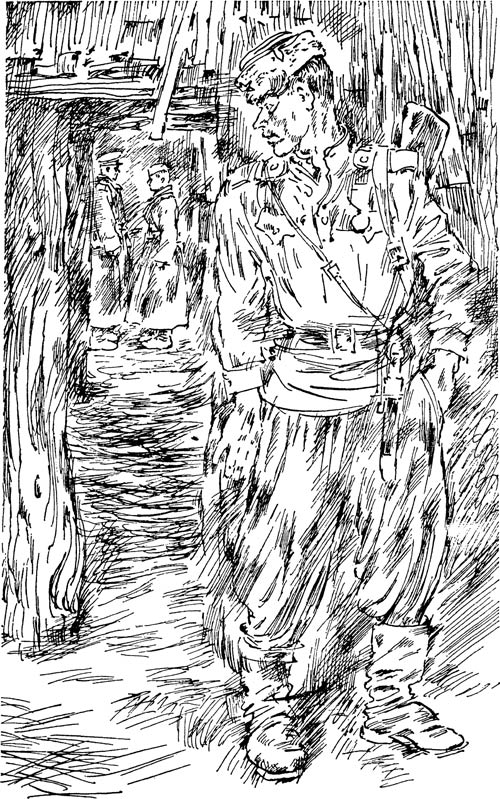 Травкин, занятый своими мыслями, вышел из дому и остановился возле крыльца. Деревня дремала. По косогору ходили стреноженные крестьянские кони. Было совершенно тихо, как может быть тихо только в деревне после стремительного прохода двух враждующих армий.