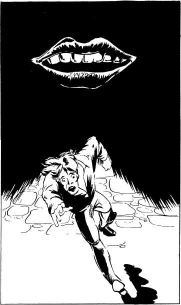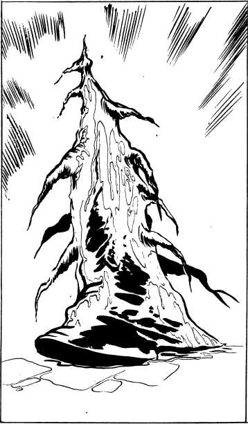 Они вылезали из пещеры, щуря свои огромные глаза, но вдруг пришли в большое волнение, стали разбегаться в разные стороны и прятаться за растущие поблизости кусты. Источник их страха — пока еще невидимое чудовище — стало появляться из пещеры. Сначала показалось щупальце, затем возникло еще одно, а потом зашевелилось около дюжины щупалец. Вскоре стали видны очертания жуткой головы. А когда чудовище выползло на свет, то я вскрикнул в ужасе, поскольку это было жуткой пародией на человеческое лицо. Голова без шеи была посажена на тело, которое представляло собой какую-то желеподобную массу, доходящую до глаз, а щупальца росли из того места, которое являлось нижней челюстью.