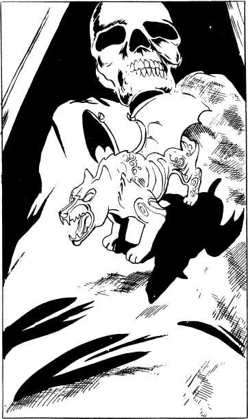 Восстановив звезду по имеющимся линиям, я уселся посередине и стал ждать. При этом мне не давали покоя те моменты в записях кузена, где он говорил о необходимости уничтожения звезды каждый раз, когда приближается опасность. Так как я в точности повторил кабалистический ритуал, то понимал — в критическом случае я должен буду также уничтожить звезду. Однако ничего не происходило, и только через несколько минут я вспомнил, что существуют еще и «слова». Я встал, нашел записи с заклинанием, вернулся обратно, сел в середине звезды и могильным голосом прочел заклинание.