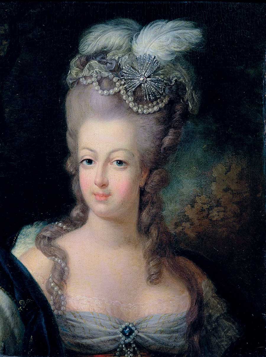 Мария-Антуанетта вошла в историю как икона красоты и моды (лишнее тому подтверждение – шикарный фильм Софии Копполы 2006 года). Сложно представить, что она не всегда считалась первой красавицей. Ее мать находила во внешности дочери множество «дефектов». Самыми ужасными ей казались неровная линия роста волос, нос с горбинкой и выпирающая нижняя губа – так называемая губа Габсбургов[25]. Мария-Антуанетта была отлично осведомлена об этих своих недостатках и в возрасте всего-то двадцати пяти лет просила свою первую фрейлину, мадам Кампан: «Дай мне знак, когда увидишь, что цветы мне более не идут»[26]. Самой красивой чертой ее внешности, воспетой многими современниками, была светящаяся белая кожа – причем не только лица, но и шеи, плеч и рук[27].