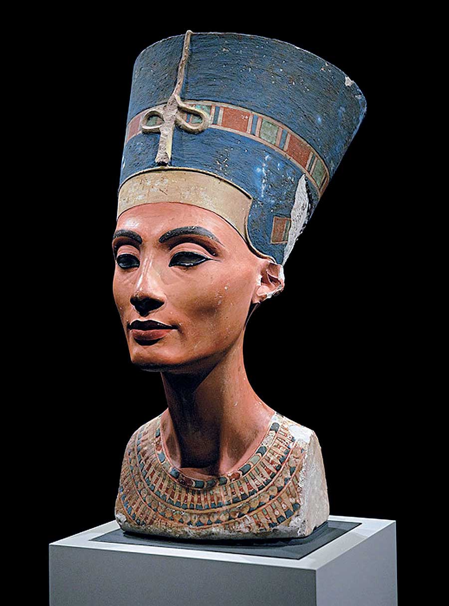 Самые совершенные по меркам тех времен краски для лица производились примерно за 10 тысяч лет до нашей эры в Древнем Египте. Египтяне были отличными химиками и знали толк и в косметике, и в компонентах, необходимых для производства увлажняющих кремов, макияжа и лаков для ногтей. К щепотке порошка из натурального вещества – например, из измельченных орехов и минералов – они добавляли животное сало или растительное масло. И получали текстуру, которая стойко держалась на глазах, губах или щеках. В древнейших египетских захоронениях были найдены инструменты для смешивания красок – палитры, дробилки и аппликаторы, что позволяет предположить, что они были не только неотъемлемой частью повседневной жизни, но и ценностью в жизни загробной. Египтяне внесли бесспорный вклад в индустрию красоты, создав невероятный макияж глаз, где основным цветом был черный. Но и красный цвет они тоже применяли смело. Чтобы сделать губы ярче, они использовали смесь красной охры и жира. Румяна, изготовленные из тех же ингредиентов – возможно, с добавлением воска или смолы, – придавали щекам красный лакированный блеск, кричаще-яркий на фоне изумрудно-зеленых век и густо обведенных черной сурьмой глаз[6].