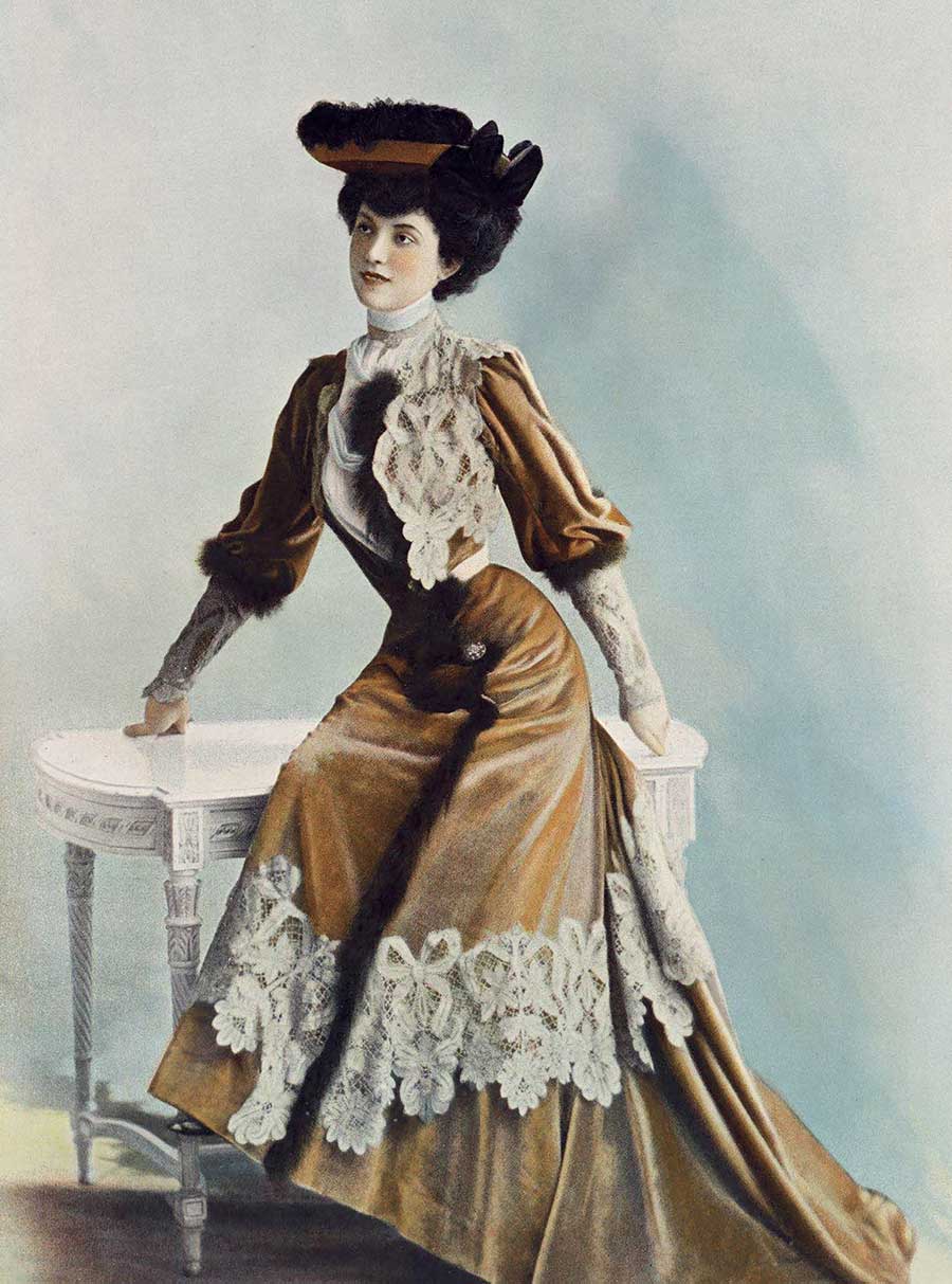 Эдвард был известным повесой и любителем удовольствий (его многочисленные связи с актрисами и светскими львицами широко обсуждались современниками), но, несмотря на это, считается, что его брак с Александрой был в общем и целом счастливым – и как королевская пара они пользовались большой популярностью. Александру любили за красоту, грацию и очарование, ее стилю одежды пытались подражать. Она часто носила высокие воротники и бархатки на шее – скорее всего, чтобы прикрыть небольшой шрам. Тем не менее этот аксессуар вошел в моду и остался там на последующие пятьдесят лет. Она была одной из первых женщин эдвардианской эпохи, которая открыто носила пудру и румяна, предоставляя те же возможности и другим женщинам. До этого макияж не возбранялся в среде актрис, но только такое «августейшее разрешение» могло реабилитировать его окончательно. С косметикой или без, но Александра, судя по всему, выглядела удивительно молодо. В статье в американском Vogue 1907 года говорится, что «королева Англии Александра давно считается одним из чудес света благодаря своей поразительно юной внешности…» – при том, что ей тогда было шестьдесят три. Далее по тексту нам дают понять, что эта неувядающая молодость – не только чудо, но и результат усилий со стороны самой монаршей особы.