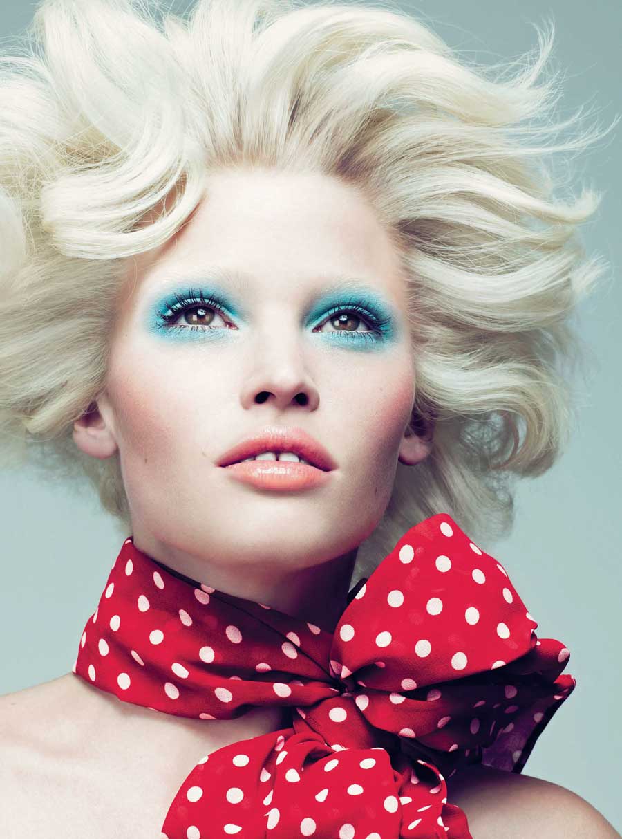 Нарисованный красный рот поразительным образом одновременно и отсылает к античности и традициям, и выглядит современно и смело.