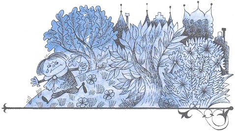 — Вот бы из этой полянки сшить большую зелёную шляпу, а из тонкой тропинки сделать ленту с тройным бантом, — сказал он.