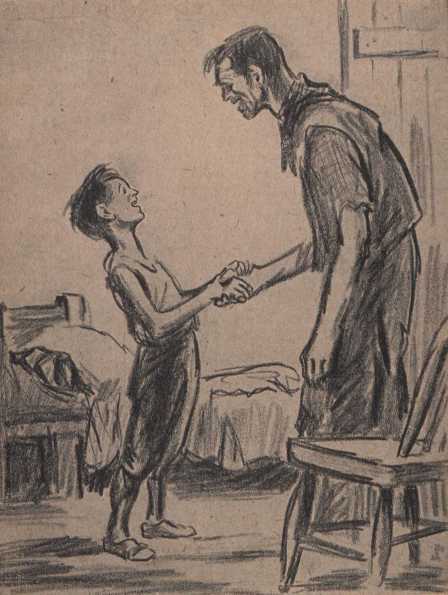«Скэб! скэб! скэб!» — застучало в голове у Джонни. Он вскочил и поспешно стал одеваться. Отец стоял над ним и улыбался.