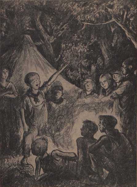 Громким криком ответили ему пионеры, когда он закончил. Они вскочили на ноги и кричали в ответ: «Всегда готовы!» — снова и снова, весело и воинственно. И казалось, будто все холмы, залитые луной, и темное небо Америки откликаются эхом на этот крик.