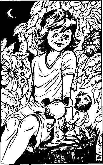 И вот с помощью слёз чернила с её пальцев перешли на щёки и нос. Именно теперь наши путешественники окончательно убедились, что она обыкновенная девочка, такая, как и все школьницы её возраста, и поэтому можно было переходить к перемирию.