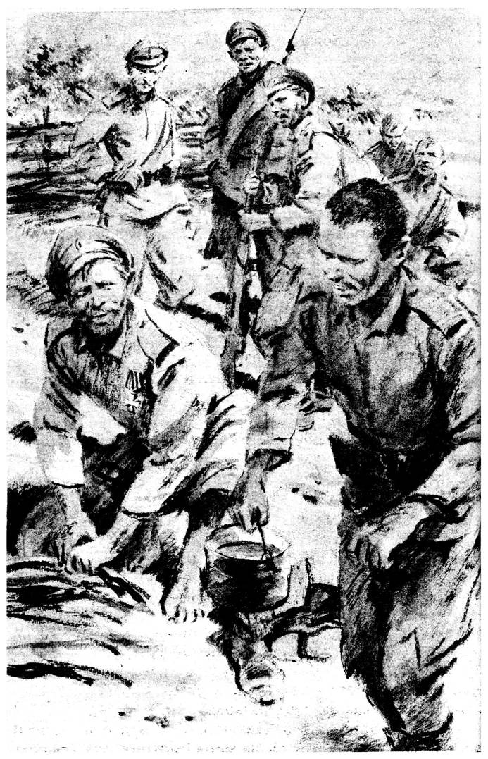 Схватка была короткой и страшной. Враг тянулся за кинжалом к поясу. Колобанов, придавливая ему руку, искал оружие. Граната снова попалась ему под руку. Взмахнув ею, он ударил врага по голове, как молотком, несколько раз, пока тело того не ослабло.