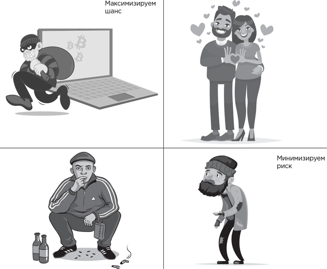 После того как принято решение не тратить деньги, обычно принимается решение что-то с ними сделать. Назовем это решением инвестировать. Если при этом деньги инвестируются в самое многообещающее объявление в интернете, например в «надежный проект с выплатой до 2 % в день», и бесследно растворяются, продолжим считать это инвестицией, но уже не просто плохой, а очень плохой. Педанты скажут, что инвестиции в пирамиду не должны называться этим священным словом и его надо поберечь для неких «настоящих» инвестиций, но таковы уж наши определения, о которых мы договорились.