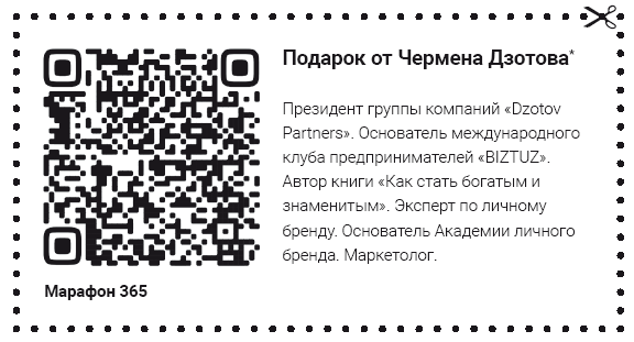 Для получения подарка (этого и всех остальных) перейдите по qr-коду или напишите сообщение в аккаунте автора или его партнеров с кодовой фразой «Как стать человеком-брендом?»