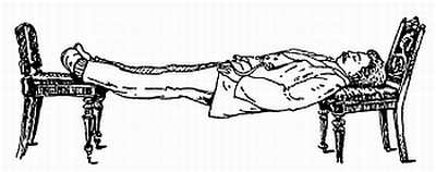 Хронический запор. Больного надо уложить на кушетку. Правая рука расположена на солнечном сплетении, левая — на основании черепа или на позвоночнике, ее постепенно перемещают от десятого грудного позвонка по позвоночнику до крестца. Пациенту рекомендуют пить небольшими глотками холодную воду; одновременно надо делать глубокие дыхания и физические упражнения.