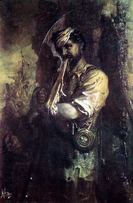 Больше всего увлечен гимназист историей. Он добросовестно учит хронологию и перечень королевских династий по учебникам. Но прошлое оживает не в учебниках, одобренных министерством просвещения, но в строках о князе, навстречу которому выходит из темного леса старик, покорный Перуну. Кудесник — в домотканой рубахе, Олег — в тяжелой броне. Деревянный идол — Перун, белый череп коня, курган, на котором пируют воины. Воскресает прошлое в древнем слове о походе путивльского князя: скрывается за холмом родная земля, лисицы брешут на красные щиты, темнится, меркнет солнце и женщина рано плачет на городской стене.
